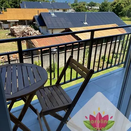 The 55 m^2 Hermoso Departamento Nuevo En Pucon Equipado Con 3 Dormitorios Wifi Y Estacionamiento Privado A 5 Minutos Del Centro Y Lago offers views of the garden and a location 16 minutes' walk from Plaza de Armas de Pucon. Situated in close proximity to Buses Caburgua, the apartment will suprise you with a sundeck and a golf course.